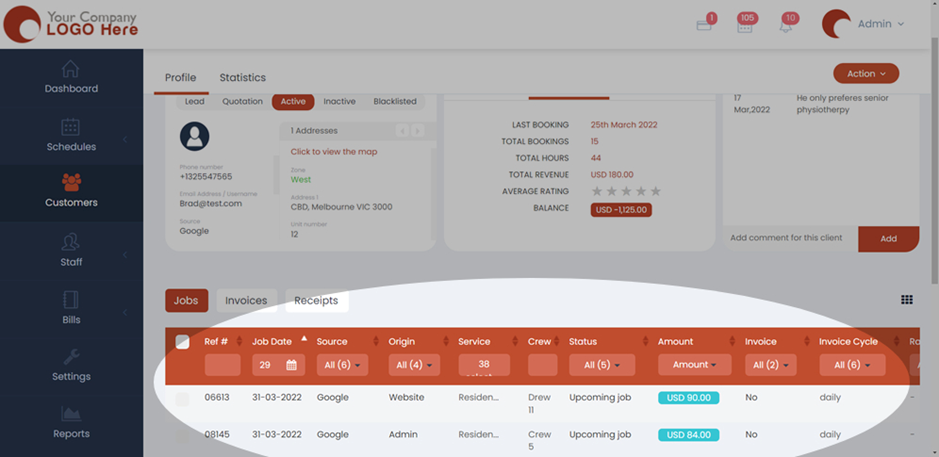 - Now, two jobs on the same day would appear under the Jobs tab for the customer. In our case, Brad now has two bookings on the 31st of March, 2022.