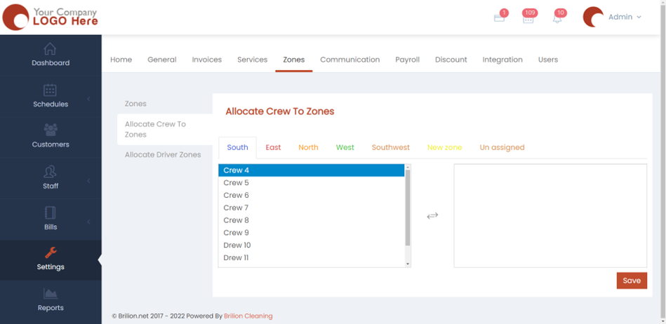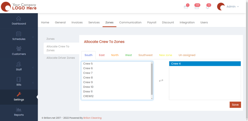 - To allocate crews to zones, please head over to Settings > Zones > Allocate Crew to Zones.
