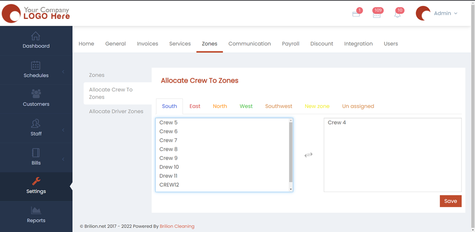 - Hit Save and now the crews will be allocated to their respective zones.