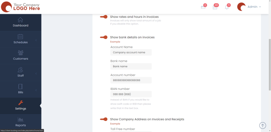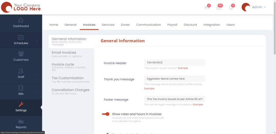 • To begin, please navigate to Settings > Invoices > General information