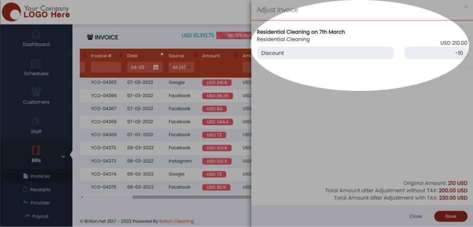 • Click on “Save” and the invoice will be adjusted to that amount.